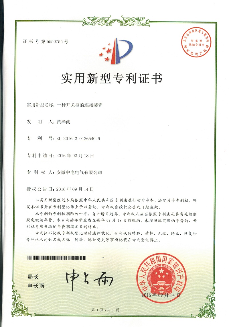 證書-開關(guān)柜的連接裝置